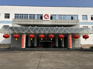 處的工作人員,在廠區行政大樓門口掛起大紅燈籠、系上中國結,并